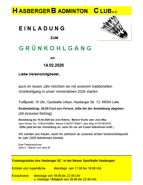 Auch im neuen Jahr möchten wir mit unserem traditionellen Grünkohlgang in unser Vereinsleben 2024 starten.